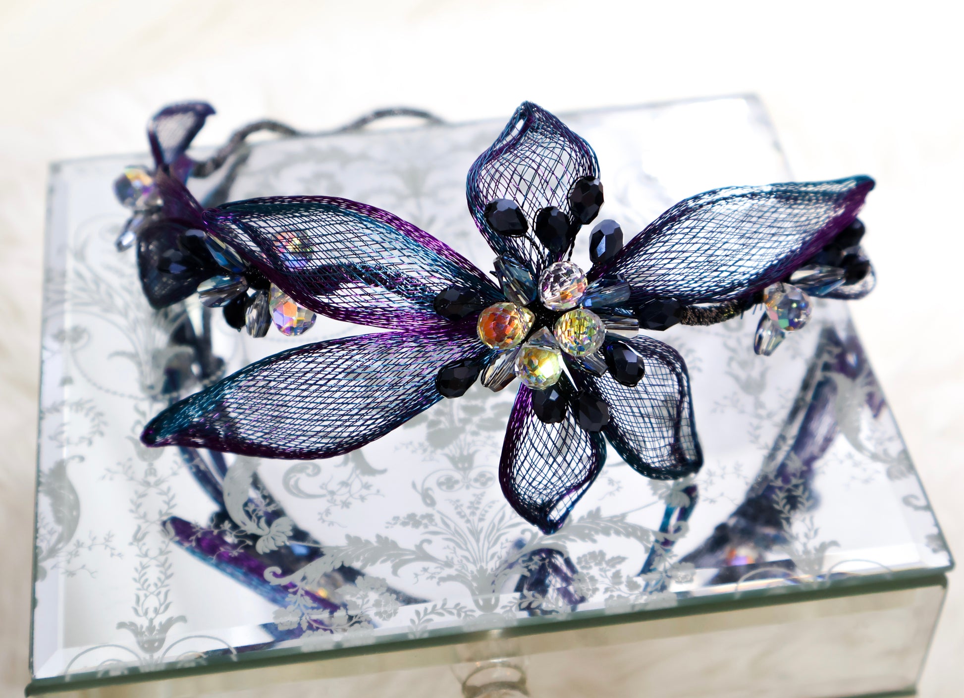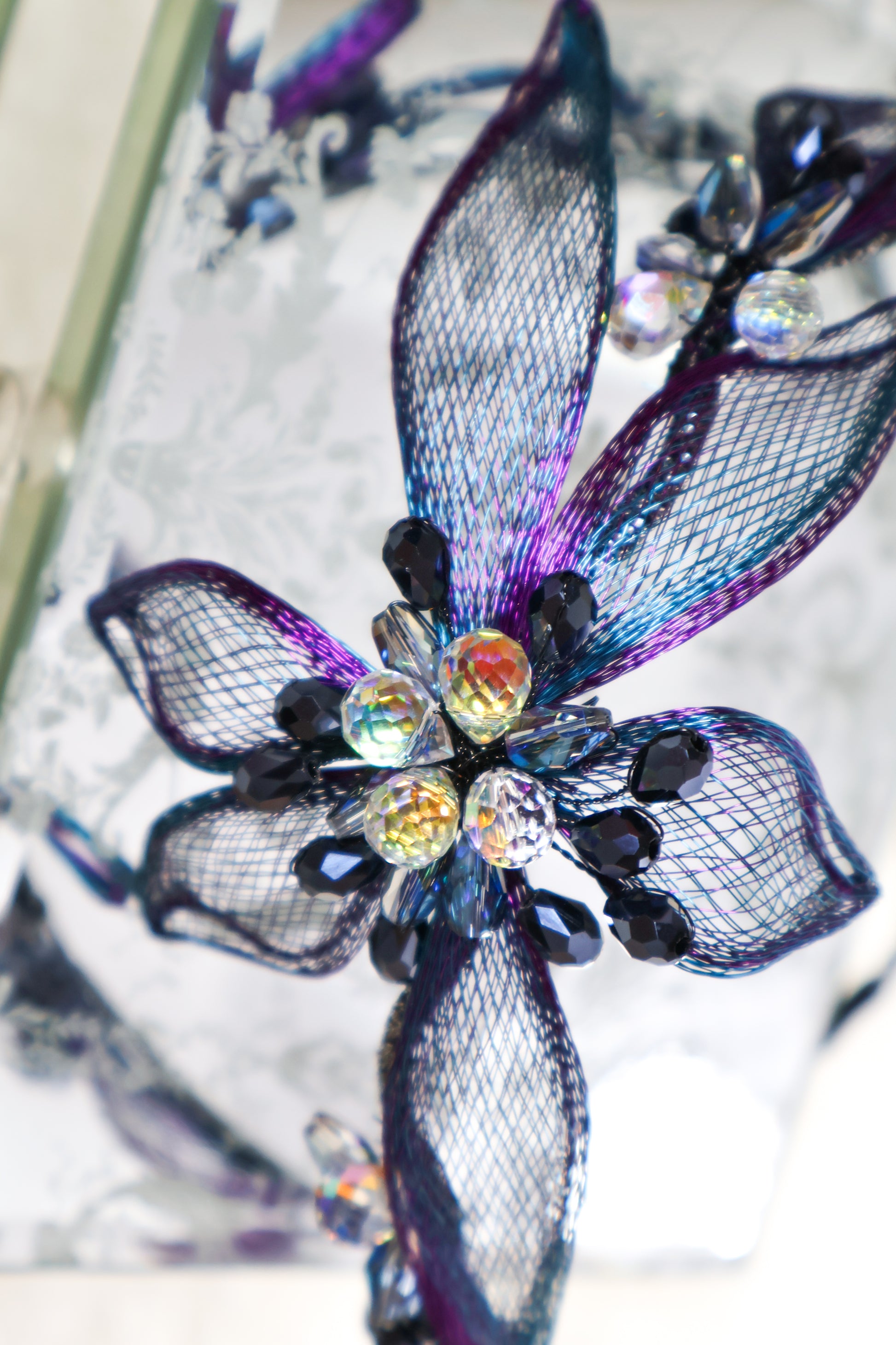 素材:ワイヤーメッシュ、クリスタルビーズ、ガラスパーツ