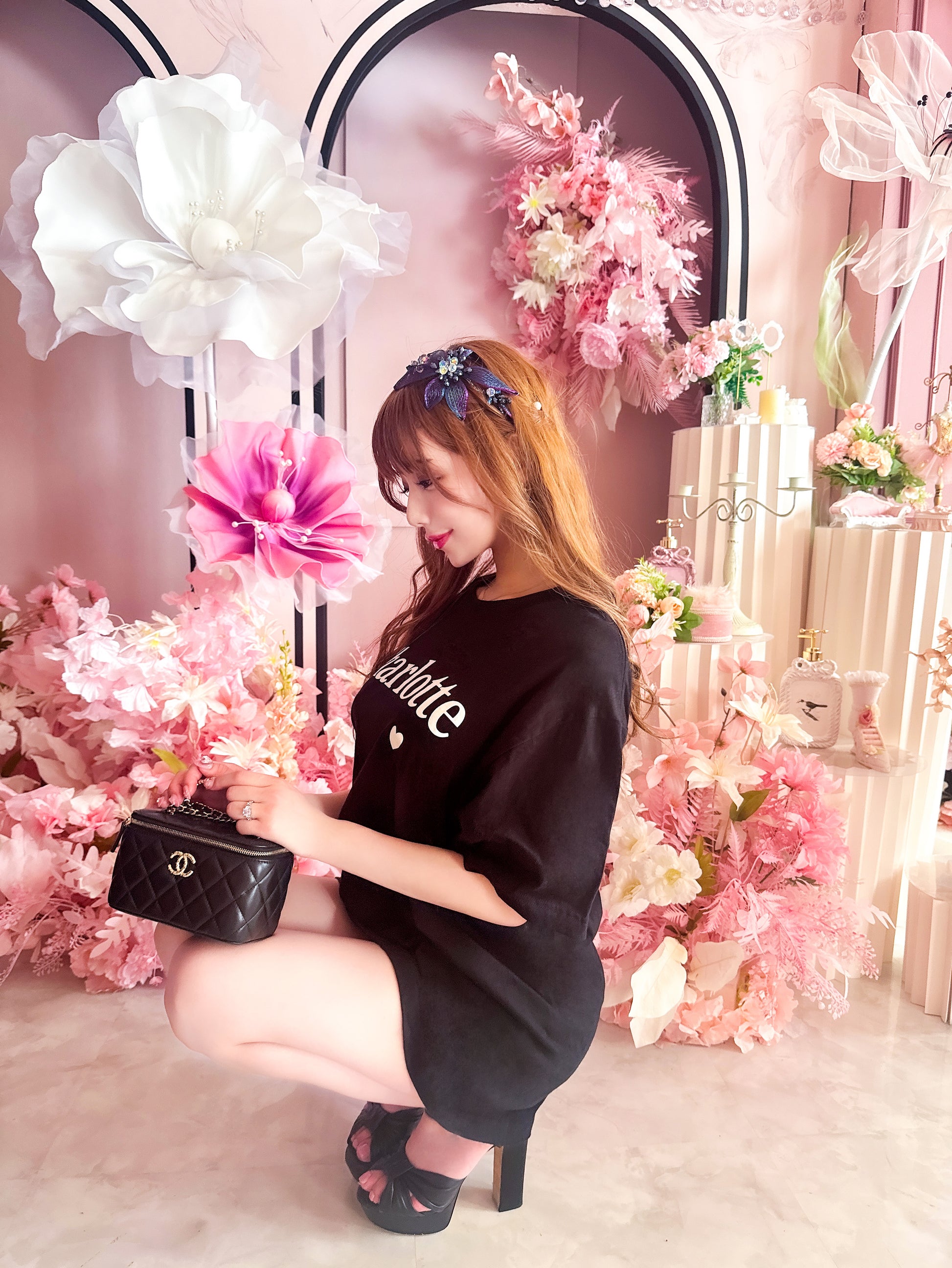 まるで夜の庭に咲く幻想の花のように、顔まわりを華やかに彩ってくれます。