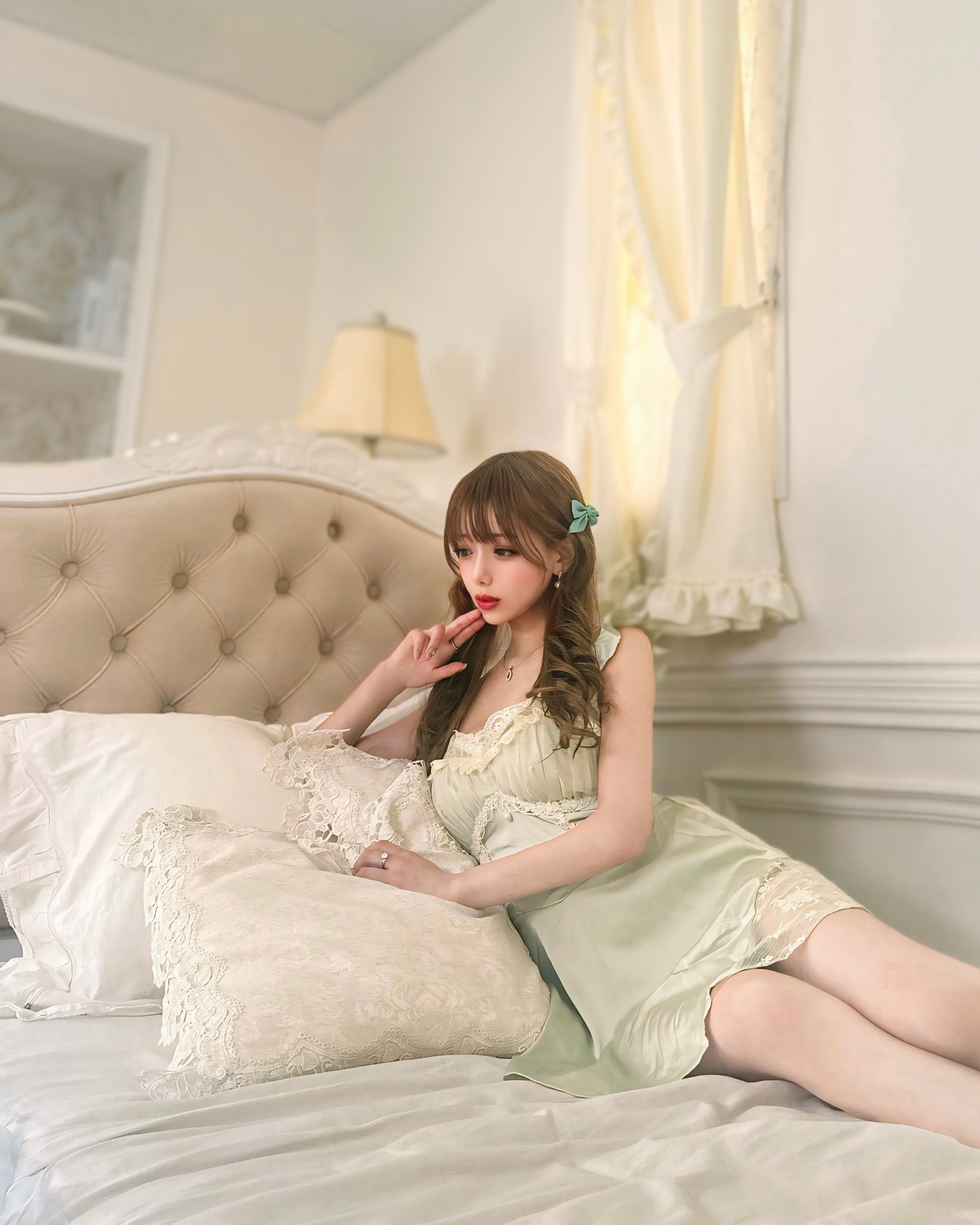 淡いミントカラーがふんわりと肌を包み込む、